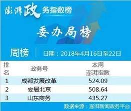 近日,由中心(院)运维的“成都发展改革”在“澎湃政务指数分榜”中,分别以562.71、524.09的指数连续两周位列委办局榜第一位。这也是“成都发展改革”在一个月内第3次位列该分榜第一位,成都发展改革工作受到持续关注,宣传的广度和深度得到进一步提升。