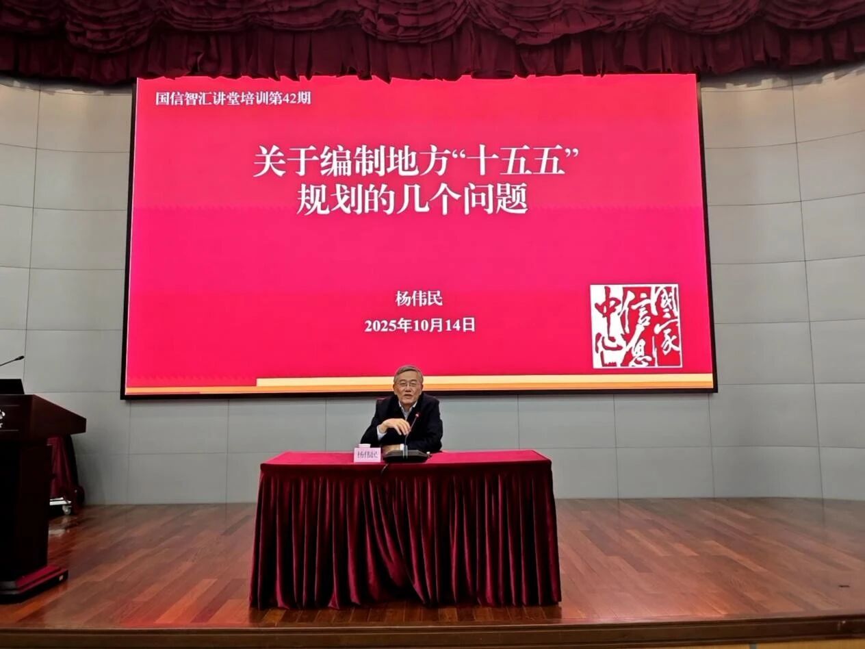 10月14日下午,国家信息中心组织召开“国信智汇讲堂”第42期培训讲座。讲座邀请十三届全国政协常委、经济委员会副主任,原中央财经领导小组办公室副主任杨伟民专题讲授“编制地方‘十五五’规划的几个问题”。中心党委书记、主任徐强同志主持会议,中心专职党委副书记、纪委书记吴文化,各部门负责人以及干部员工120余人参会。