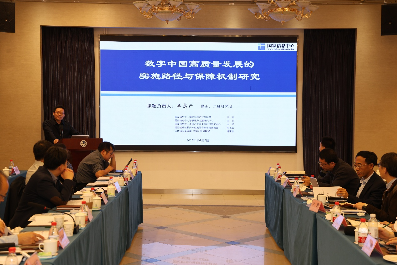 国家信息中心信息化和产业发展部主任单志广研究员作为“数字中国高质量发展的实施路径与保障机制研究”课题负责人参会交流,对课题整体情况和研究思路进行了介绍。单志广研究员指出,本课题将聚焦数字中国理论体系的底层逻辑变迁,结合智能化、分布式、价值化的技术变革趋势,开展数字中国高质量发展在新时期的内涵要义、实施路径和发展模式研究,体现“十五五”时期数字中国建设的战略性、引领性、协调性和先进性。