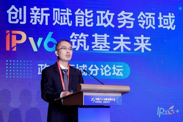 徐春学在致辞中指出,IPv6正在成为下一代互联网创新的起点和平台,成为万物互联时代的基石,在新型基础设施建设中发挥着关键性、基础性作用。“十四五”我国全面推进数字政府建设,业务上云、万物互联、云网一体成为必然趋势。为有效应对数字时代的业务挑战,需要加快国家电子政务外网IPv6演进。要按照“统一规划、分级分域、应用驱动、平滑过渡”的原则,在制定相关标准、加强统计监测、组织交流培训、强化网络安全四个方面,进一步加大力度,确保政务外网IPv6规模部署和应用工作有序推进。