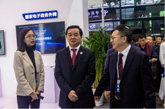 中央网络安全和信息化委员会办公室主任庄荣文、副主任刘烈宏,浙江省人民政府副省长高兴夫,全国政协委员、中国网络空间安全协会理事长王秀军等领导分别莅临国家信息中心展台,进行参观指导并听取有关工作介绍。
