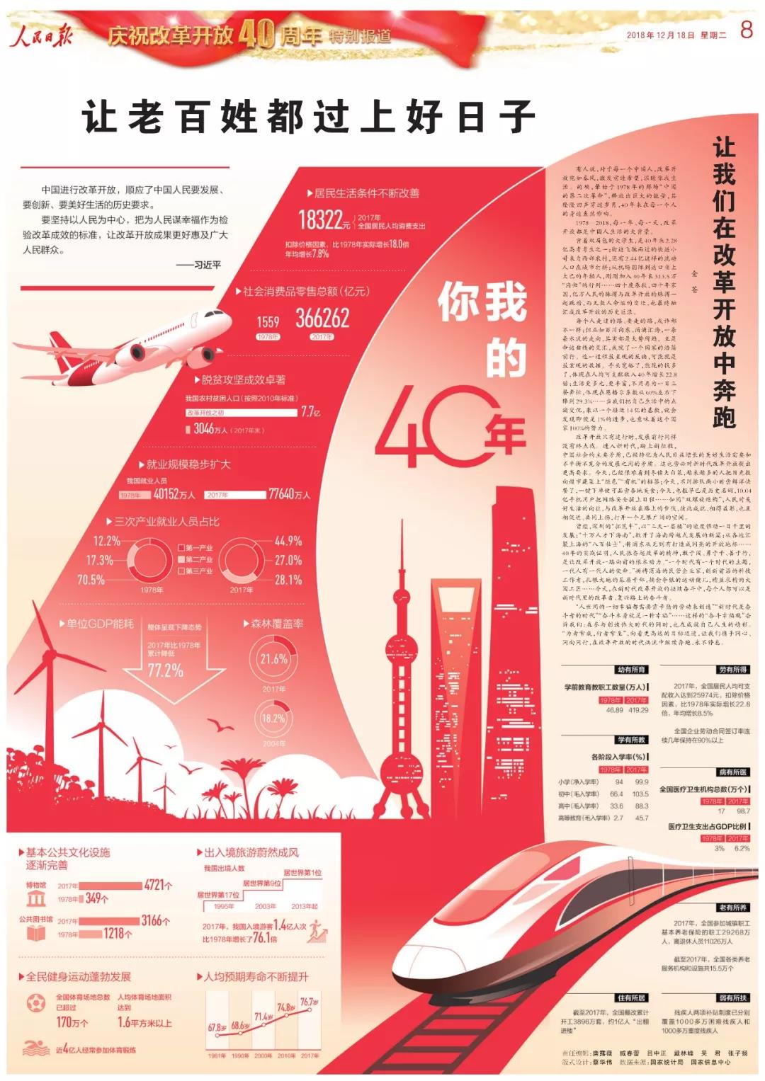 为庆祝改革开放四十周年,国家信息中心与人民日报联合推出特别报道——《让老百姓都过上好日子》。