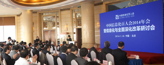 2014年1月18日,中国信息化百人会2014年年会暨“信息化与全面深化改革”研讨会在北京饭店隆重开幕。本次年会分为公开论坛、晚餐会和智库夜话闭门会议三个部分。