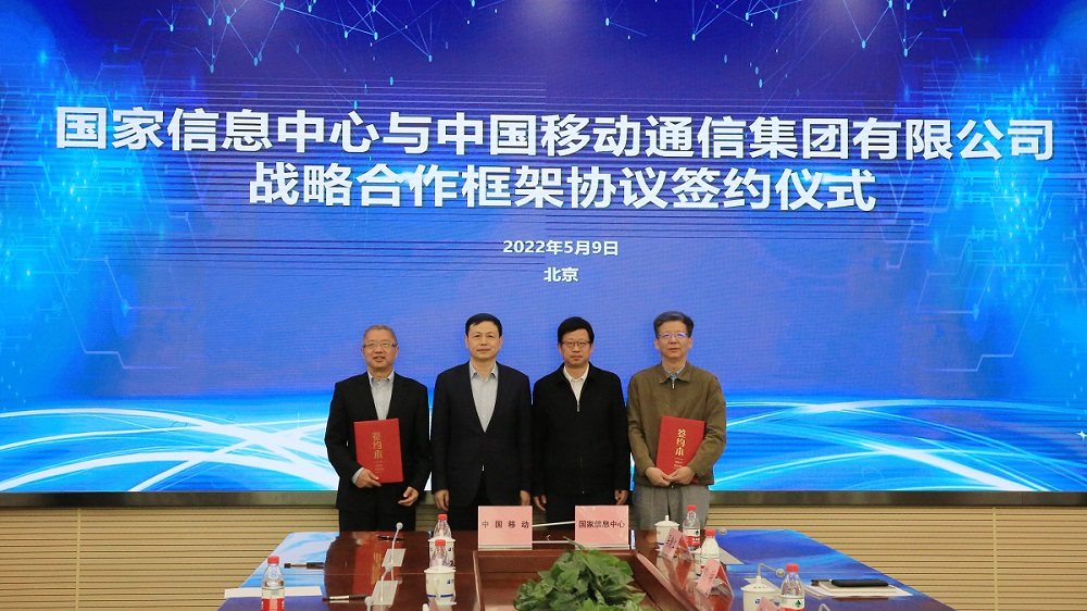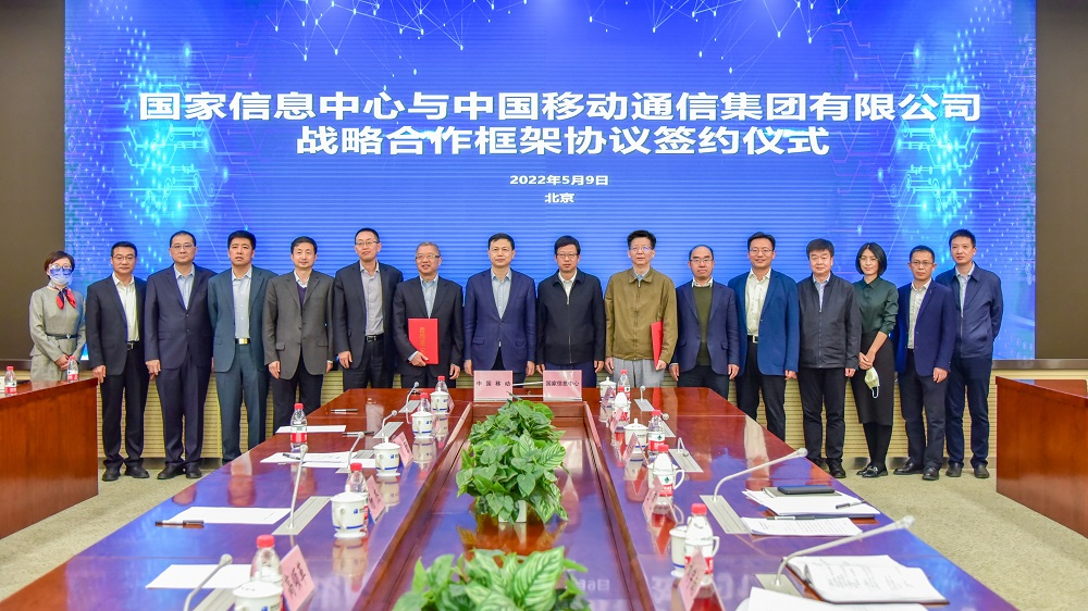2022年5月9日下午,国家信息中心与中国移动通信集团有限公司在北京举行战略合作框架协议签署仪式。国家发展改革委党组成员、副主任丛亮,中国移动通信集团有限公司党组书记、董事长杨杰出席签约仪式。签约仪式由国家信息中心党委书记、主任刘宇南主持,党委常委、副主任徐长明参加。刘宇南与中国移动通信集团有限公司副总经理简勤代表双方签约。国家信息中心信息化和产业发展部主任单志广就双方在区块链、智慧城市等领域的战略合作情况进行了汇报。