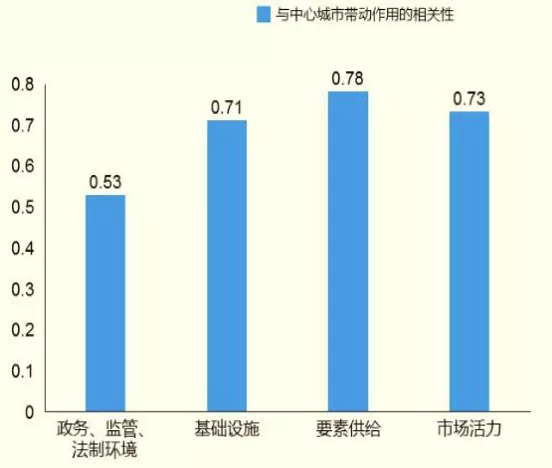 图1 中心城市带动作用指标与其他四项指标的相关性分析
